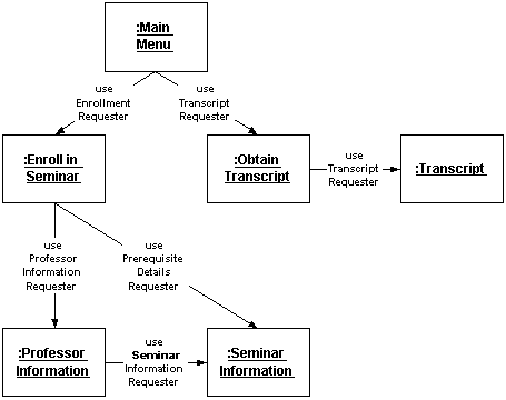 Figure 4. Sequence diagram for the basic course of action for the Enroll In Seminar use case.